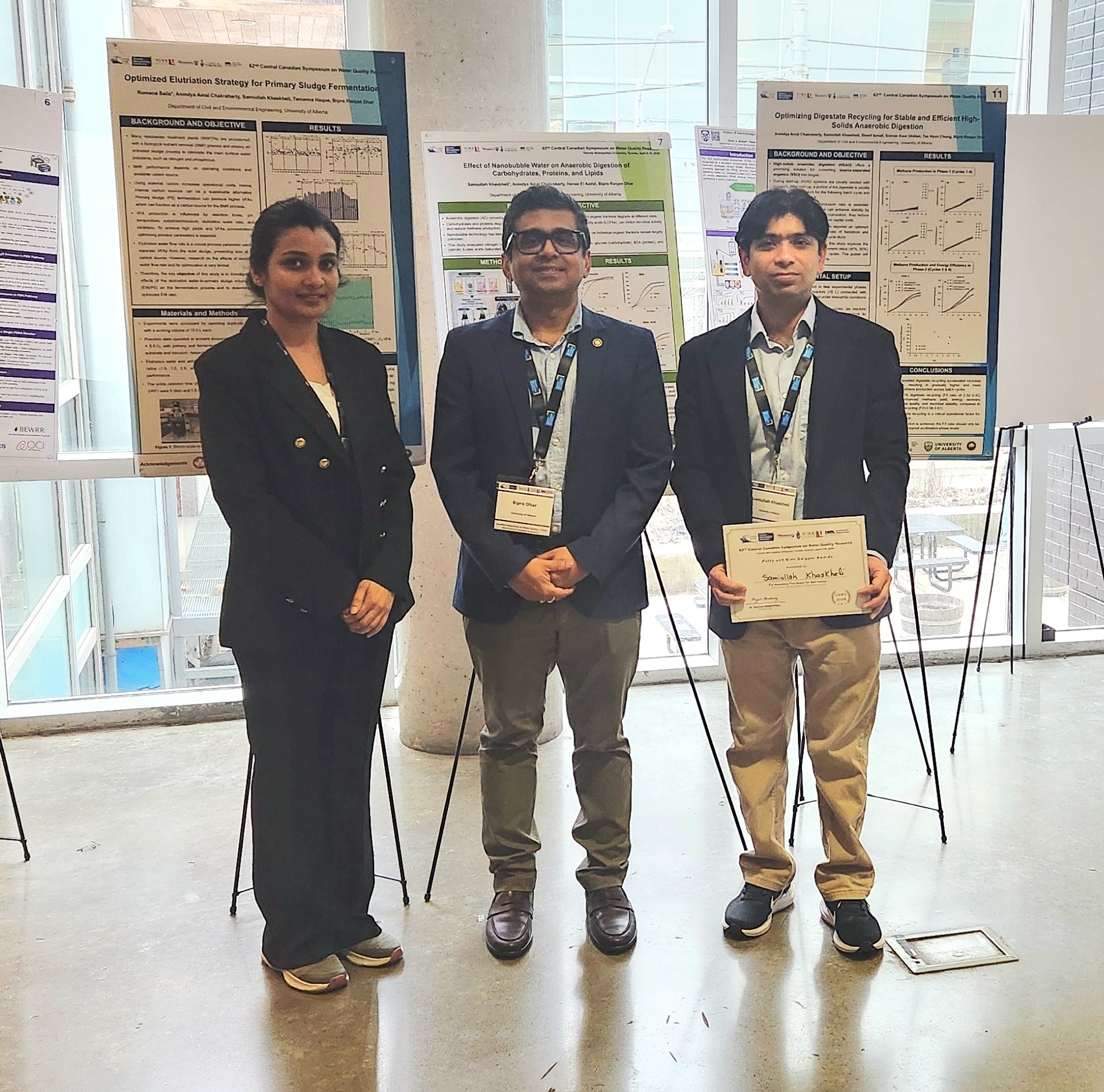 Romana and Samiullah presented their work at the 62nd Central Canadian Symposium on Water Quality Research, held April 9–10, 2026, in Toronto, Ontario. Samiullah received the First Place – Best Poster Award (Patty & Glen Daigger Award). Congratulations, Samiullah!